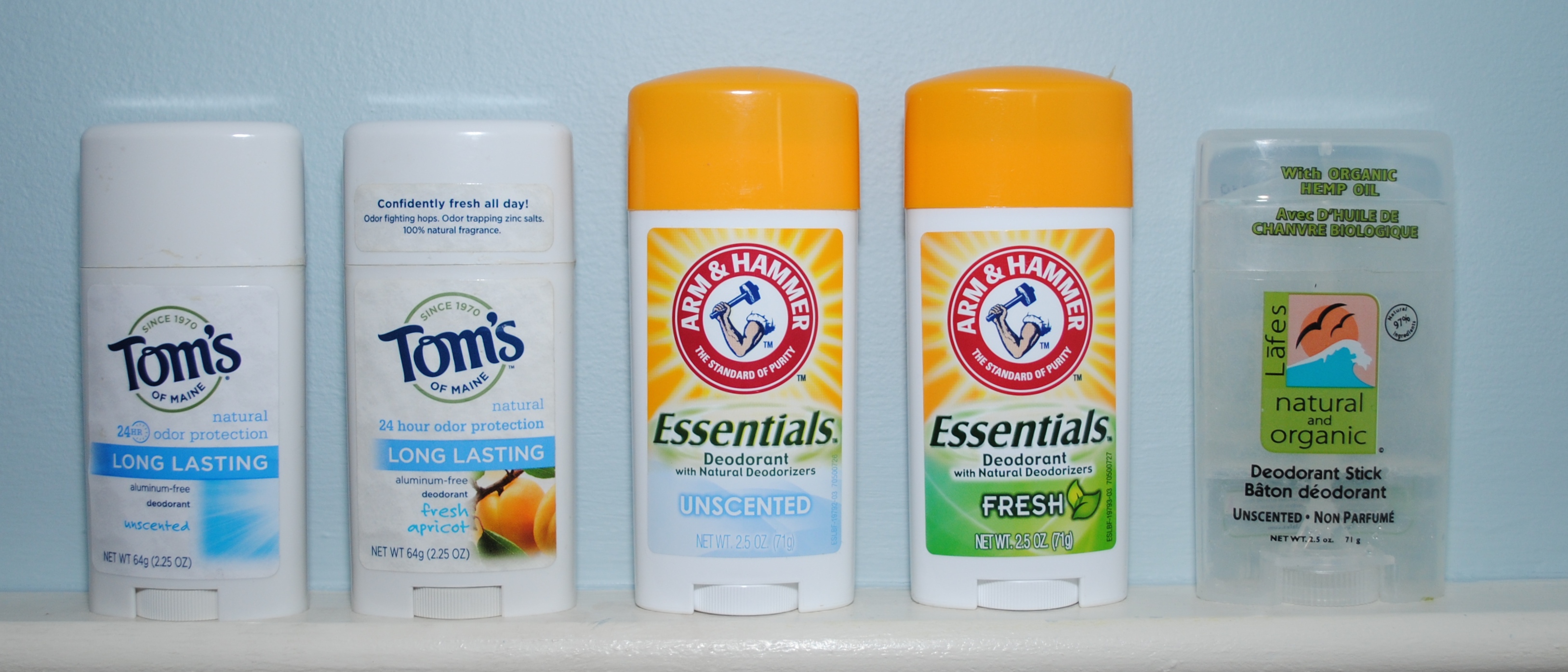 Tom’s of Maine was my least favorite.  The unscented version didn’t do much to fight off stink.  The fresh apricot was a little better and smelled really nice but wore off quickly.  Tom’s contains propylene glycol as the first ingredient which has been added to the list of no no’s recently.  This one just didn’t work for me. I give it an F.